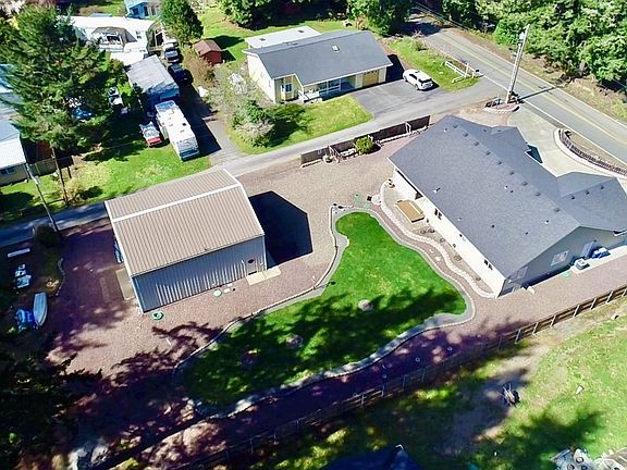 This fantastic Custom 3-bedroom, 2-full bathroom single-level home in Brookings is a rare find. Full size 2-car attached garage and a very spacious 40x36 ft detached SHOP with deeded access on side street makes for a Circle driveway and easy access with RV or Boats. This beautiful custom built home was built in 2017 and features high ceilings , an expansive kitchen area featuring a large island with granite countertops, stainless steel appliances, Open floor plan expanding into a large living area with a cozy pellet stove, ceiling fans in every room, luxury vinyl plank flooring throughout, washer dryer, ample lighting, Heat pump, covered front and back porch This home was built with all your needs in mind. The master bedroom and bath are very well thought out and spacious with a walk in shower and fancy glass doors and a Large walk in closet. The large laundry room has a sink with granite countertops making laundry a breeze. Dual pane vinyl windows and Hardy board siding (exterior painted in 2024). It has a custom murphy bed in the spare bedroom matching cabinetry throughout the home. Step out your back yard to a covered concrete porch -perfect for all your outdoor entertaining. Plenty of land here for a spacious garden as well. This .50 acre lot includes lots of room for added space and convenience. Easy-care landscaping completes the package. This large shop is great for all your outdoor toys, Boats, Rvs, ATVs, and much more. Located in a desirable area of Brookings, you’ll be just minutes away from local beaches, shopping, entertainment, and restaurants. Don't miss out on this Beautiful well kept move-in ready home. Brookings is Oregon’s "Banana Belt", enjoy a mild climate, stunning beaches, world-class fishing, and endless outdoor adventures. Kayak on the Chetco River, explore Samuel H. Boardman State Park, or relax on Harris Beach. Features concrete and covered front and back porches. Furniture negotiable. Survey map on file.