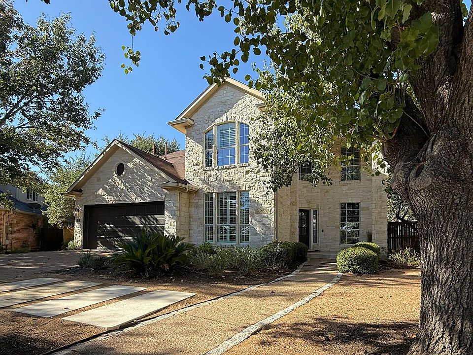 4 Bedroom/3.5 Bathroom Dominion at Great Hills Home with Elegant Stone Exterior. Primary Bedroom, Home Office/Study, Formal Living or Dining, Family Room open to Kitchen are all downstairs. Gourmet Kitchen with stainless steel double ovens, 5-burner gas cooktop, microwave, and dishwasher. Spacious walk-in pantry and large utility room. Primary Suite offers high ceilings, excellent view of the backyard, and boasts a large remodeled primary bathroom with double vanities, frameless shower, new soaking tub, and large walk-in closet. The flooring (outside of the primary bathroom) on the entire first floor has recently been replaced with European White Oak hardwoods and new tall baseboards. Head Upstairs for an additional 3 bedrooms and 2 full bathrooms. The bedrooms are spacious and have ample storage. There is also a second game room /media room upstairs. Plus, there is a "Texas Basement" - walk-in attic with even more storage. The property sits proud on a large Cul-de-Sac lot that boasts over 125' of yard space in the backyard. There are a number of mature oak and shade trees around the lot. And the back patio offers great entertaining opportunities. The flat backyard makes it easy to keep an eye on your children (or your pets)! Electric vehicle charging is available in the 2-car garage.