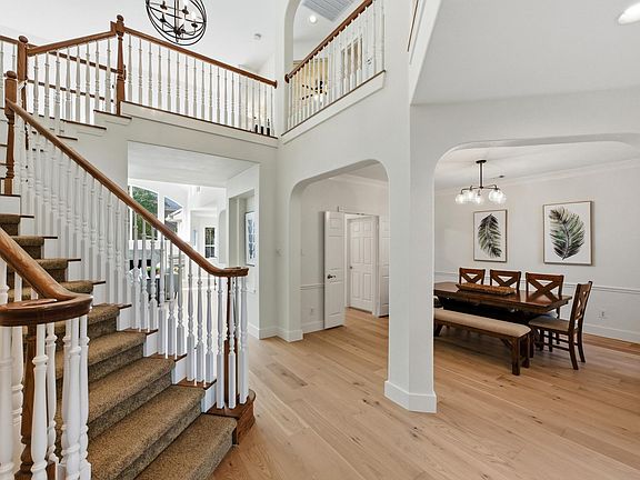 Flat backyardLarge cul-de-sac lotNew tall baseboardsFormal living or diningLarge utility roomPrimary bedroomElegant stone exterior