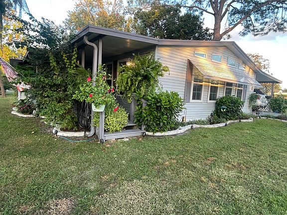 This home is like brand new! Move in ready, just bring your things and move in! Champion Build Sunview Model with over 1500 square feet of pristine living area. 2023 to 2025 New Asphalt Roof, all new exterior and interior doors, all walls and ceilings are sheet-rocked with orange peel texture, laminate flooring throughout, kitchen has new marble countertops, sinks and fixtures, Bathrooms new sinks, countertops and fixtures, new AC, Refrigerator, 7 new vinyl windows, and 6 new shades installed in the living room, 2 new windows in bathrooms, new Lanai metal roof, 17 Inch toilets installed, Renovated shed and added workbench, new dryer vent, 2 Suncast HD resin garden sheds, AMAZING outdoor landscaping around home, new crystal fan/light in dining area, 3 new porch/ lanai lights, installed gutter stuff in all gutters, HD antenna, and painted the driveway. Home has 2 bedrooms with walk in closets and 2 full bath. Open kitchen area with island for fabulous entertaining while preparing meals. Inside laundry room is a great bonus with so much space. You will fall in love the moment you walk through the front door! enjoy relaxing on a cool night in the screened in lanai surrounded by beautiful foliage. What a beautiful home for you to enjoy. This home sits on an oversized corner lot. There is a clubhouse for activities and a boat ramp to enjoy Smith Lake. A fenced in lot for storing RV or Boats is a great addition as well. Furniture is negotiable. Call to day for your private tour.