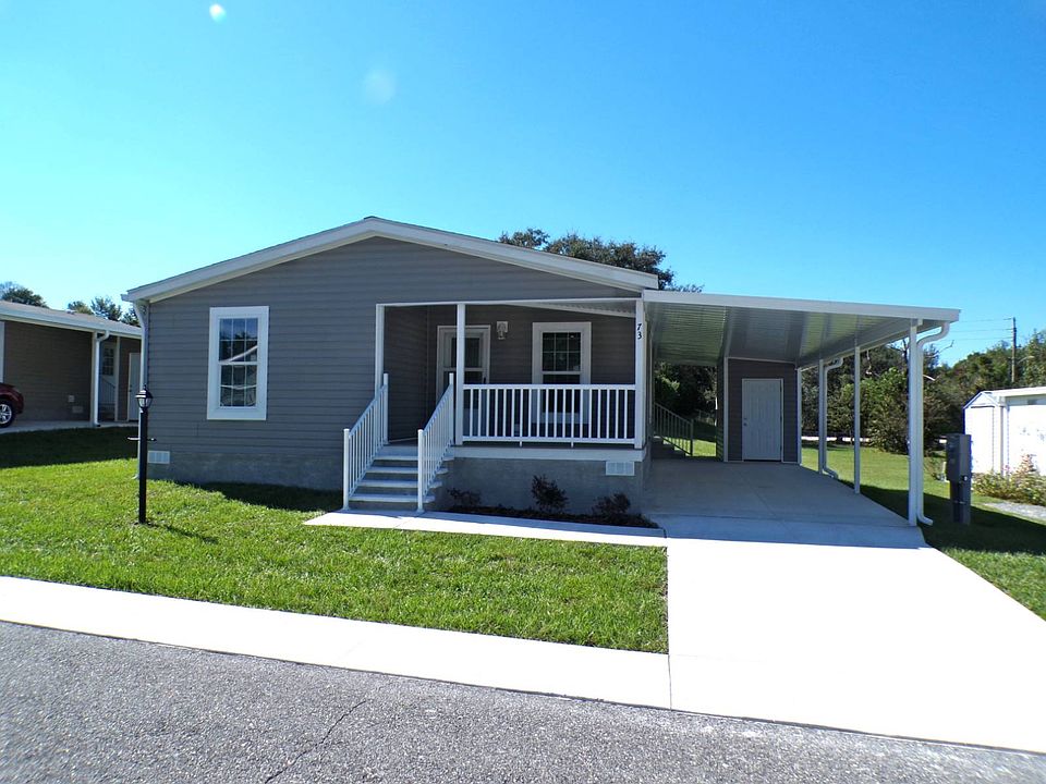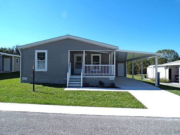 Be the very first to call this beautiful brand-new Nobility home your own! Located in the sought-after Smith Lake Shores Village - a vibrant, walkable, 55+ gated community with all of the amenities you need! Built in 2025 and never lived in, this stunning 2-bedroom, 2-bath residence blends comfort, convenience, and contemporary design in every detail. Inside, you'll be greeted by attractive linoleum flooring and elegant crown molding throughout, offering a high-end look that is easy to clean and maintain. The spacious, open kitchen is truly the heart of the home with plenty of room for a cozy breakfast nook or a comfortable dining area, perfect for casual meals or entertaining guests. Additional features include stainless steel appliances, a center island with undercounter storage, snack bar, pantry, upgraded oven hood, recessed lighting, and ample cabinet space for all your cookware, smaller appliances, and dishes. Beyond the kitchen, you'll find a tucked-away indoor laundry area complete with built in storage cabinets that add practicality without sacrificing style. The primary suite has a large walk-in closet and a luxurious ensuite bath boasting an extra-large walk-in shower with glass sliding doors. Enjoy morning coffee or evening sunsets on your welcoming front porch and take advantage of the covered carport with storage shed for added convenience. This home checks every box - brand new, low maintenance, beautifully designed, and move-in ready. Monthly lot rent is $626, which includes water, sewer, trash, lawn care, and full access to a variety of amenities designed to support an active, social, and comfortable lifestyle for its residents including a pool, clubhouse, lake access with boat storage and many other indoor/outdoor activities. Don't miss your chance to own this modern gem!