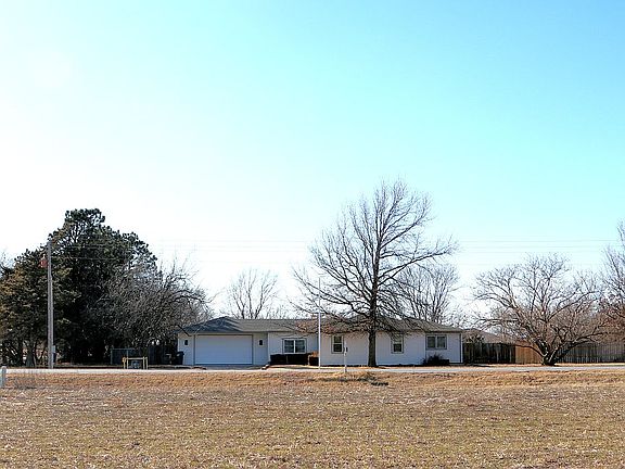 Welcome home to small town living with all the amenities of a big city, just minutes away! You'll love this ranch home on just under 3 acres, right off the blacktop. This well-kept home has all the updates and provides ample room for entertaining inside and out. With 3 bedrooms, 1.5 bathrooms, 2 living rooms, a large kitchen with dining space AND a bonus room (currently being used as a pantry but could easily be used as extra dining area or an office), what more could you need or want? Outside, you'll appreciate the low maintenance vinyl siding, the circle drive to accommodate parking for all of your guests and the large covered back patio to enjoy those dreamy Kansas sunsets. Part of the backyard is fenced to contain the pets, while the rest is open for you to roam! The 22'x22' shop with electric has endless mancave opportunities, or you can store all the toys you're going to have for playing around on all of your property. Call for a private showing TODAY!
