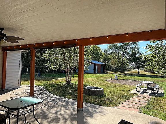 Welcome home to small town living with all the amenities of a big city, just minutes away! You'll love this ranch home on just under 3 acres, right off the blacktop. This well-kept home has all the updates and provides ample room for entertaining inside and out. With 3 bedrooms, 1.5 bathrooms, 2 living rooms, a large kitchen with dining space AND a bonus room (currently being used as a pantry but could easily be used as extra dining area or an office), what more could you need or want? Outside, you'll appreciate the low maintenance vinyl siding, the circle drive to accommodate parking for all of your guests and the large covered back patio to enjoy those dreamy Kansas sunsets. Part of the backyard is fenced to contain the pets, while the rest is open for you to roam! The 22'x22' shop with electric has endless mancave opportunities, or you can store all the toys you're going to have for playing around on all of your property. Call for a private showing TODAY!