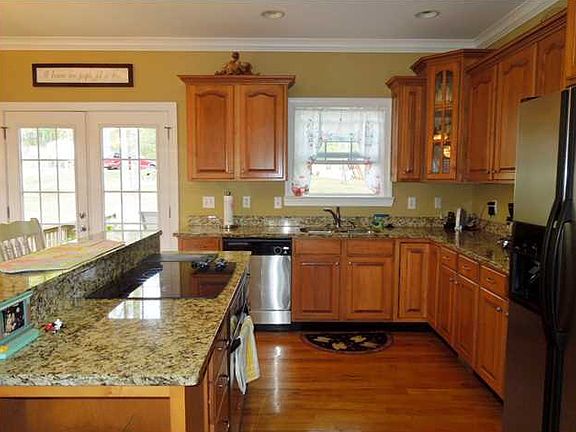 Great Rancher over full basement sitting on about 3 acres with a barn and horse ready. The house is 3 bedrooms and 3.5 baths over a full finished basement with possible inlaw/teen suite. Main level is hardwood floors in main areas, carpet in bedrooms and tiled baths. Great Room with cathedral ceilings, gas log fireplace. Kitchen has custom cabinets, granite counter tops, ceramic cook top, Stainless steel oven and dishwasher. Bayed dining area with french doors to rear deck. Master bedroom has treyed ceiling with recessed lighting, walk-in closet and adjoining bath with double vanities, separate shower and jetted tub. First additional bedroom with cathedral ceiling, and round top window letting in lots of natural light, 2nd additional bedroom also ample in size and has pocket door to shared bath plus an additional half bath. Extra wide stairs lead to the finished lower level. Large open den/living area has its own heating and air system, Kitchen area with same cabinetry as main kitchen and matching granite counters,and tile flooring. Nice full bathroom with tub/shower,tile flooring. Also double doors to lower private patio. Double garage is deep and can hold larger vehicles. Exterior is Brick and vinyl siding for easy maintenance. Back part of property is partially fenced and has electricity with separate meter. Additional 2 acres and small house at rear of property can be purchased from different owner as a package, call Listing agent for details and pricing.