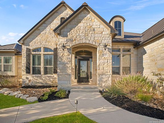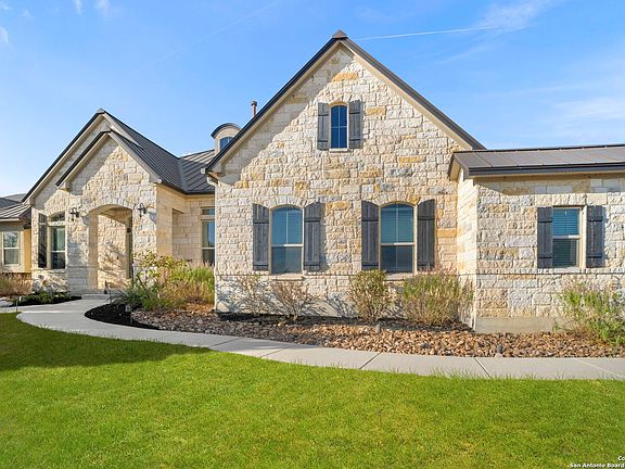 Property came back with an appraisal higher than list price! Instant EQUITY!Luxury living in The Canyons at Scenic Loop! This stunning single-story David Weekley home offers 3,892 sq. ft. of open-concept elegance on a .58-acre corner lot. Featuring 4 spacious bedrooms, 4 full baths, and two living areas, this home blends comfort and sophistication. The gourmet kitchen boasts double ovens, gas cooking, custom cabinetry, and a large island. Enjoy gatherings in the separate dining area or relax by the dual gas fireplaces with enclosed glass screens. The home includes wood flooring, high ceilings, and designer finishes throughout. Exterior highlights include a 3-car garage, circular drive, pergola, gutters, and full sprinkler system. Located in the gated community of The Canyons at Scenic Loop, this home combines privacy, luxury, and convenience within minutes of Boerne, La Cantera, and top NISD schools.