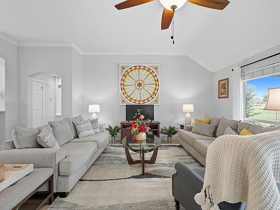 Exceptionally Updated 2 Bedroom,Den,2 Bath popular Palmera Light and Open Floor Plan set on Level 13,708sqft Fenced Parcel with Golf Course Views NOW PRICED $37,000 LOWER THAN APPRAISED VALUE in DFW's PREMIER ACTIVE ADULT COMMUNITY offering a LIFESTYLE with Lots of Activities including GOLF,PICKLEBALL,TENNIS,BOCCI BALL,TEXAS TOSS,Outdoor Resort Pool,Indoor Pool,Exercise Facility, Arts and Crafts, Wood Shop,Clubhouse,and Restaurant. Highlights include:Upgraded Flooring Throughout.Huge Living Room and Formal Dining Area with Vaulted Ceilings and Lots of Windows streaming Lots of Natural Light.Cook's Kitchen with Lots of Painted Cabinets,Quartz Counters,Tile Backsplash,Work Island,and Casual Dining Area.Luxurious Primary Bedroom with Coved Ceiling,Crown Molding,and En-Suite with Mirrored Double Sink Vanity with Quartz Counters,Big Shower with Tile Surround,Private Water Closet,and Big Walk-in Closet.Additional Large Bedroom and Bath,Large Den,and Large 2-Car Garage plus Golf Cart Garage and Lots of Storage.The Level 13,708sqft Fenced Parcel has Plenty of room for a Future Pool, Future Expansion, or Adding a Casita to the Home. ALL APPLIANCES STAY INCLUDING REFRIGERATOR, WASHER,AND DRYER!