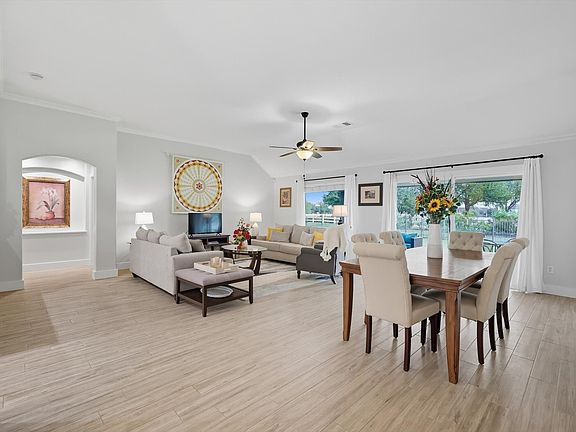 Golf course viewsFormal dining areaGolf cart garageLarge denQuartz countersLots of windowsWork island