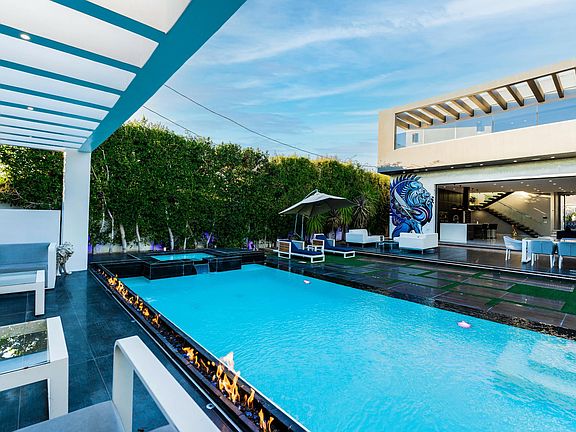 For short and long term rental - Exclusively offered by @thenightfallgroup A sophisticated, high-end, resort like property in Beverlywood, centrally located only minutes from Rodeo Drive and Century City. Sleek, modern, and oozing with style, this newly built masterpiece features a vast, open floor plan with unobstructed indoor-outdoor flow. Every technological amenity is controlled by the touch of a button: in-ceiling speakers in every room, LED lighting, in-wall fireplaces, and custom automated shades/window coverings. No expense was spared to take this Control-4 smart home to the next level, with nearly $200k invested in technology alone. The open kitchen is anchored by the oversized island and offers top-of-the-line Miele appliances that include two dishwashers, two ovens and a paneled refrigerator that camouflages with the chic aesthetic of surrounding dark cabinetry. Fleetwood pocket doors disappear into the walls of the great living room, allowing the entire home to open to the outside. Here you'll find a stunning infinity pool and hot tub, with a custom fire wall, custom water wall, and mural installation created by famed artist Chris Saunders. Master suite with deck overlooking pool below, enormous his/her separate walk-in closets, fireplace and 5-star bath. Rooftop deck with fire pit and nearly 360 degree views of the entire city.