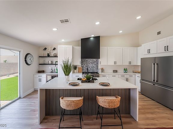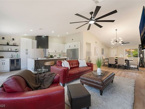 Live your vibe in this effortlessly cool, organic modern one-story—remodeled with intention and style. The flexible layout flows with possibility: keep two cozy living areas or open it up for one expansive space to gather and entertain. With 4 spacious bedrooms and 2 updated baths, there’s room to breathe. The kitchen? Total scene-stealer—with sleek finishes, upgraded appliances, and a coffee/bar area ready for sunrise sips or happy hour pours. The primary suite is your private recharge zone, featuring a walk-in shower so luxe, spa days may be optional. Step out back to a low-maintenance yard with pavers and space to chill under the Vegas sky. The oversized, epoxied garage? Perfect for your gear, projects, or weekend tinkering. Major upgrades—roof service, newer AC and water heater—already handled. Fresh, functional, and full of good energy—this home is more than move-in ready. It’s ready for you.