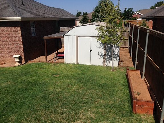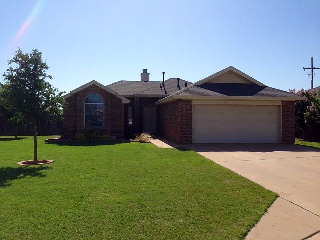 Nestled in a cul de sac of the newly expanding south Lubbock, the home has been recently updated with several amenities including: granite kitchen counter tops, ceramic tile backsplash, Egyptian Glass tile fireplace and bar, laminate wood flooring, ceramic tile in both bathrooms, newly installed carpet in the front rooms. Decorative Crown Molding accents the high ceilings in the kitchen, dining and living room. The home is highly energy efficient with a temperature controlled attic ventilation system and all the windows being tinted blocking out harmful UV rays. The backyard is perfect for outdoor living with a concrete patio, stained arbor, matching flower beds. A storage shed is hidden the corner leaving a great view of the backyard. Built in cabinets and shelving in the garage provide a great work space with lots of storage. A great home with lots of beautiful upgrades.