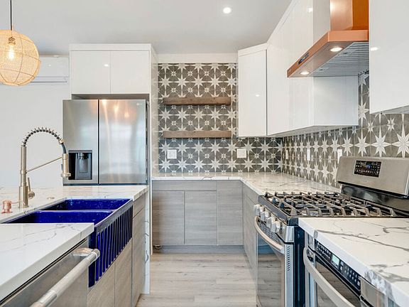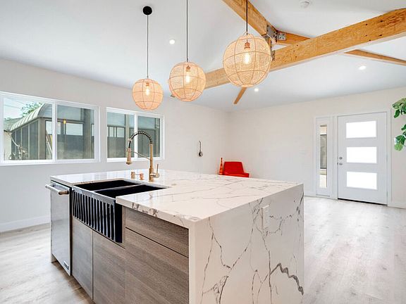 Welcome to this newly built, modern 1-bedroom, 1-bathroom home in the heart of Inglewood. Designed with vaulted ceilings and an open layout, it offers a bright and airy feel. The luxurious kitchen boasts European stone countertops, a waterfall island, stylish backsplash tile, and stainless steel appliances (refrigerator, stove/oven, dishwasher, built-in microwave). The spacious living area features wood-finish flooring, while the bedroom opens to a private patio, perfect for outdoor relaxation. Additional highlights include a stackable washer/dryer, ample storage, A/C & heat, and street parking. Centrally located, just minutes from SoFi Stadium, Intuit Dome, The Forum, YouTube Theater, Culver City, shopping, and dining. Don't miss out, schedule a tour today!