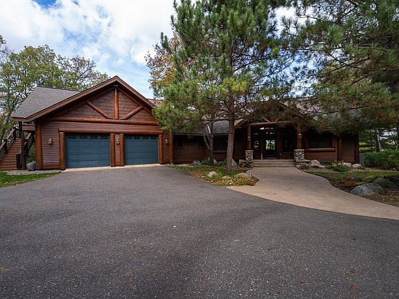 Retreat to the privacy of this stunning 4-bedroom 5-bath log-sided Kimball Lake estate, which boasts 183 feet of sand frontage on the Ossawinnamakee Chain and 1.59 manicured acres that feature a sand beach, professionally landscaped displays, rock boulder walls, perennials, a huge lakeside paver deck, a lakeside paver fire pit area, stunning lake views, and mature trees. This well-appointed home has that Up North feel you are looking for and boasts an open floor plan, a wall of lakeside windows showing amazing views of the lake, hardwood floors, a vaulted knotty pine ceiling, log beam accents, and custom cabinetry throughout. The kitchen has custom cabinetry, top-of-the-line appliances, connects to the dining room, and has access to the lakeside deck. Relax after a long day in the lakeside sun room and take in beautiful lake views. The lakeside living room features a floor-to-ceiling stone masonry fireplace and has plenty of room to visit with company. The spacious lakeside main floor primary bedroom suite has a luxurious bathroom that features a claw-foot tub and new wheelchair accessible tile shower. Other features of the main floor include an amazing laundry room and an exceptional office with beautiful built-in cabinetry. You will love the extensive lakeside deck, which features Azek deck materials, as it is a great place to share a meal with family and friends or relax after a long day. The finished walkout lower level offers you a fabulous oversized family room with a stone fireplace and plenty of room for a game of cards or pool. Additional features of the lower level include a sauna, hobby room, 2 bedrooms, and 2 baths. The attached 2-stall garage offers storage and a private apartment above, giving guests their own personal space. The apartment has a private entrance and features an open concept complete with a kitchenette, dining area, living area, sleeping areas, and a full bathroom. The detached 3-stall garage offers additional storage options for your lake toys and a bunk room for additional sleeping accommodations. This home is perfect for entertaining due to the home's open concept, coupled with the lakeside decks, patios, and fire pit area, which gives you all the room you need for small to larger groups. Gather around the lakeside fire pit with family under the stars to roast marshmallows, or take advantage of activities like boating, canoeing, kayaking, and excellent fishing. A new roof is to be completed in October 2025. The property is conveniently located in the heart of Ideal Township, just minutes away from the amenities of Crosslake, Breezy Point, Ideal Corners, and Pequot Lakes, which include great restaurants, various retail shops, premier golf courses, and the Whitefish Chain. Don’t miss the opportunity to create cherished family memories on the Ossawinnamakee Chain.