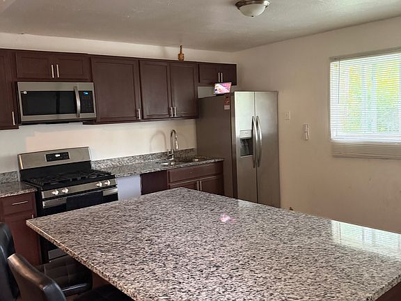 Shaker-style cabinetsThree bedroomsStone countertopsSpacious kitchenLarge islandBreakfast bar