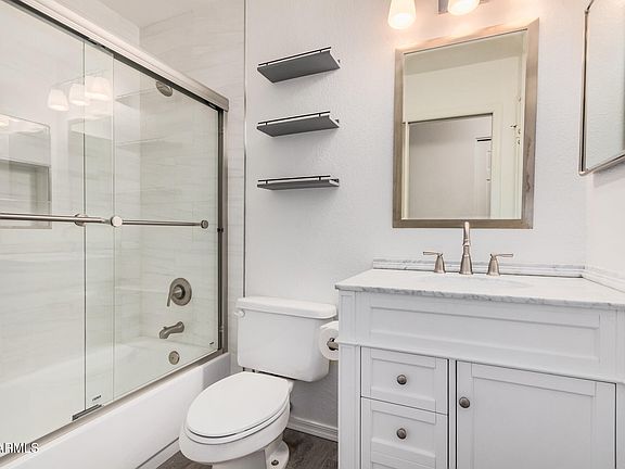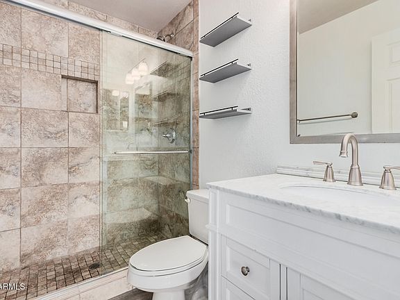 Delightful 2 bedroom 2 bathroom condo at the resort-like Racquet Club at Scottsdale Ranch. This second floor unit is North facing with great views of the pristinely manicured common areas. The open kitchen features upgraded cabinetry, granite tile counter tops and stainless steel appliances. The 2 full renovated bathrooms boast custom tile shower surrounds, floating shelving and newer vanities. Light, bright and move-in ready! Racquet Club's amenities are lengthy. Facilities include six lighted hard courts, one dedicated pickleball court, two grass courts, and an on-site pro shop. The clubhouse was recently renovated and also includes a fitness center and locker rooms. The Racquet Club offers 5 different pools and 6 spas situated on the grounds and are heated year round. Welcome!