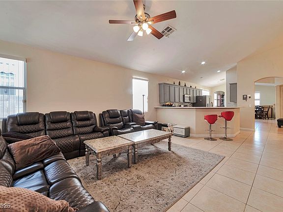 This beautiful single-story home offers 2,036 sq. ft. of open living space with 4 bedrooms, 2 full baths, and a 2-car garage. High ceilings enhance the spacious feel, while the open floor plan and 18x18 tile flooring throughout create a stylish and low-maintenance interior. Enjoy a covered patio and a nicely sized backyard—perfect for relaxing or entertaining—with the added benefit of no HOA. Conveniently located near Hwy 215, hospitals, and shopping centers, this move-in-ready home combines comfort, style, and accessibility in one perfect package.