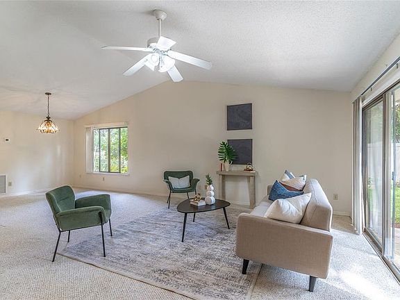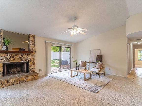 This property is a gardener’s delight featuring numerous pineapple plants, avocado tree, star fruit tree, tangerine tree, loquat tree, ruby red grapefruit tree, Barbados cherry tree, peach tree, persimmon tree, nectarine tree, mature landscaping and a fenced spacious backyard. As you enter the home you are welcomed into the entryway complete with a large storage closet. The entryway flows into the family room which looks into the living and dining room, creating a wonderful space to entertain family and friends. Both the living and family room have slider doors that access the rear patio. The kitchen has a fun peek through window into the family room. The primary bedroom is in the back of the home and has a large walk-in closet off the primary bathroom. The primary bathroom has a double sink vanity and a separate room for the shower. The two additional bedrooms share a hallway bathroom that also has an access door to the backyard. The large 2-car garage includes an ample sized storage closet. Other amenities include an inside laundry room with large storage closet, newer roof (2018), newer HVAC (2020), and newer hot water heater.