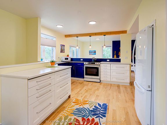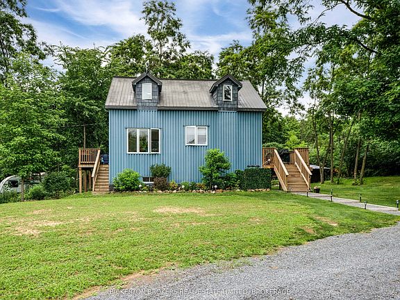 Tucked along a quiet, well-maintained country road, this enchanting 1.5-storey home is set on a picturesque 1-acre lot, offering warmth, light, and peaceful rural living. Step inside to a sun-soaked, open-concept layout where beautiful hardwood floors, freshly painted interiors, and a beautifully updated kitchen create a welcoming and polished atmosphere. The thoughtful design continues into the main-floor mudroom a charming and practical space featuring abundant storage, a deep utility sink, and a convenient shower. Down the newly built staircase, you'll find a bright and expansive finished lower level a versatile space perfect for a second bedroom, home office, or cozy family room. Upstairs, retreat to the airy primary suite, fully renovated four-piece bath and in-suite laundry. From top to bottom, this lovingly cared-for home blends character, functionality, and comfort an ideal countryside haven just waiting to welcome you home. Additional features include: Enjoy sunrise coffee or sunset wine on the wraparound deck, or host guests in the charming 2020 Riverside Retro Trailer. Detached garage with hydro and ample workspace. Elevated kayak/canoe storage. Easy access to nature trails and recreation: just a short bike ride to Kendricks Park and public beach on Lower Beverly Lake, minutes to the famous Rock Dunder hiking trail, and close to the charming village of Lyndhurst. The property also comes with an outbuilding, it is versatile and can serve as a chicken coop, studio, or party hub.