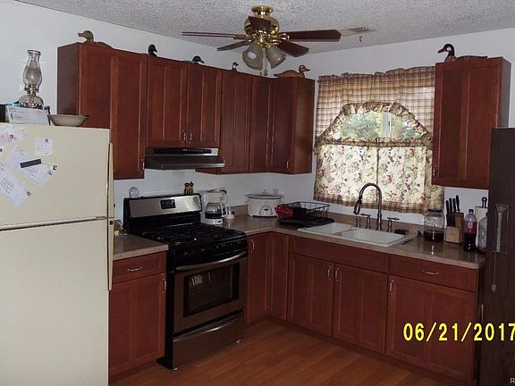 Great opportunity. 1 full, flat acre, 1500 sq. ft. metal building built extra strong to withstand snow loads and 110 MPH winds. Storage room in garage is insulated. Electric baseboard heat AND forced air furnace AND large wood stove.