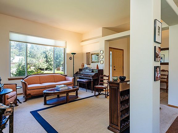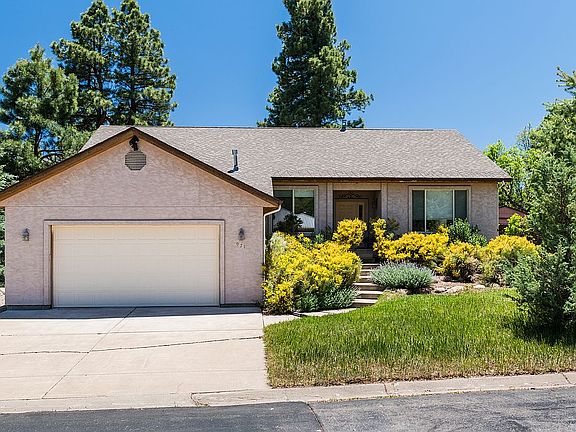 substantial walk-in closet affords grandeur and comfort. A whole-house fan pleasantly provides cooling ventilation during warmer months. An enlarged 2-car garage features an opener with remotes plus expansive, lockable, free-standing cabinets. A garage window with adjustable mini-blind invites natural light; access to under-the-home space from the garage is via a convenient walk-in door. The electrical service panel is wired for connection of a portable generator. Custom, low maintenance, yard foliage and landscaping with multiple beautiful, towering Ponderosa pines; ground-hugging Gambel Oaks, Southwestern Pine, and
