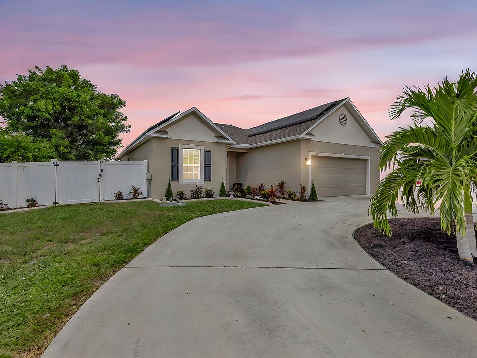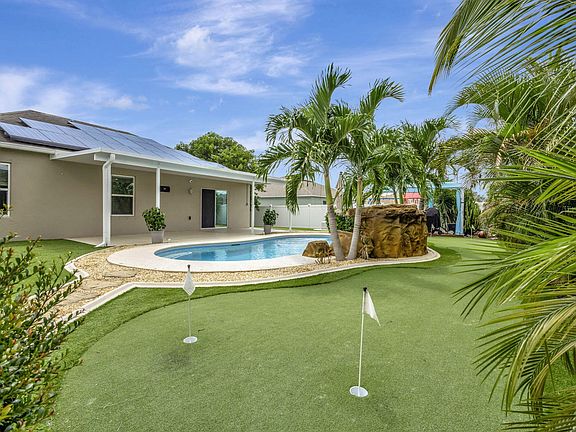 Lovely 4 BR/2BA/POOL home with privacy fenced yard! This home is in move in condition and ready for you to enjoy your Florida lifestyle! Open floor plan features a spacious kitchen with island, espresso kitchen cabinets and stainless appliances. This home also includes solar panels, which means great savings on your utility bills! But really makes this home shine is its back yard oasis! Relax on your spacious back yard covered patio, or plan a BBQ on your detached deck with cover as well!!n The sparkling pool with stonework and waterfall is ready for you to enjoy! Or perhaps relax on your back lawn or practice your golf swing on the putting green! No matter how you choose to relax, your back yard is super private and fully fenced in. Hot Tub, negotiable!