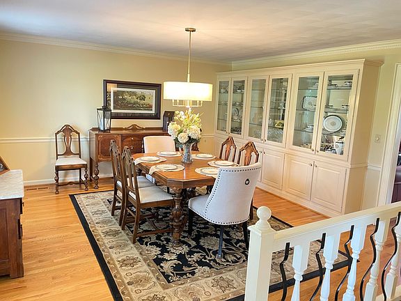 Nestled on a generous lot, this beautifully updated ranch-style home blends timeless charm with thoughtful modern enhancements. Step inside to find warm hardwood flooring and crown molding in the living room and large formal dining room complete with a lighted built-in china cabinet—perfect for entertaining. The main kitchen is a chef's dream with a gas cooktop, sleek quartz countertops, and ample cabinet space. The primary suite offers a serene retreat with a fully renovated bath featuring a luxurious soaking tub, walk-in shower, and updated finishes. Convenience is key with washer and dryer hookups on both the main level and in the basement. The finished lower level offers added flexibility with a kitchenette that includes an induction stove, microwave, sink, and mini-fridge—perfect for guests, entertaining, or multi-generational living. Enjoy the outdoors from either the inviting covered front porch or the expansive covered back porch—ideal for relaxing or hosting guests. Recent exterior updates include new vinyl soffits and gutters for low-maintenance living. This home is a rare combination of comfort, function, and style with room to grow.