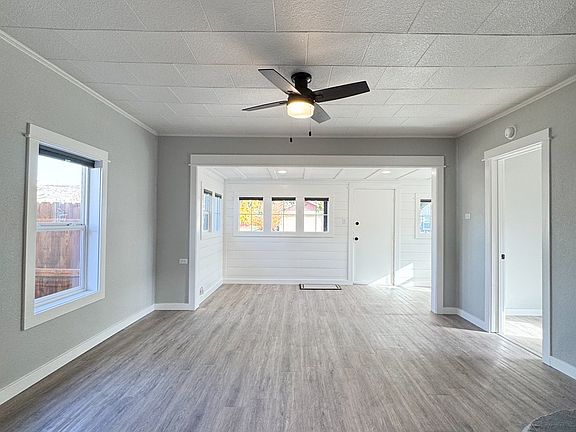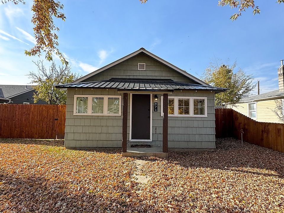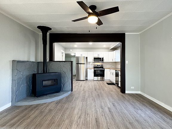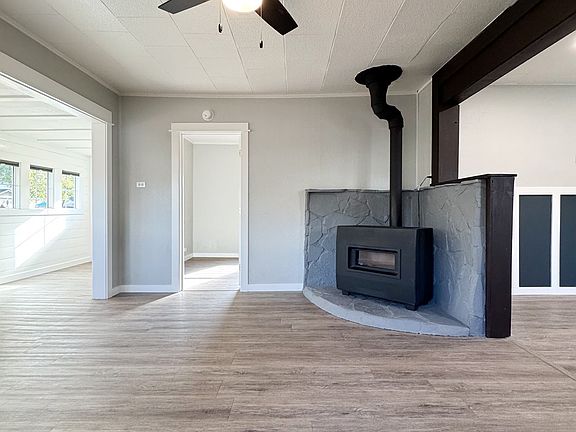 This charming single level home has been completely remodeled and is move in ready! Bright and welcoming with tons of natural light, all new flooring, paint, fixtures, and stainless steel appliances. The kitchen features butcher block counters and recessed lighting, while the cozy living room offers a gas stove for warmth and charm. Enjoy ceiling fans in every room, a spacious laundry area, detached workshop, privacy fence, and alley access. Absolutely adorable inside and out!