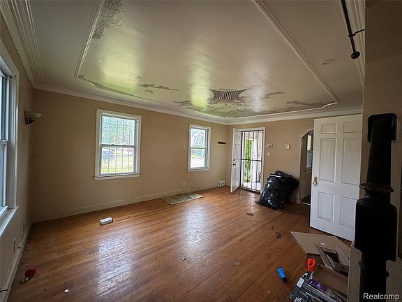 GREAT INVESTMENT OR STARTER HOME OPPORTUNITY! PRICED TO SELL! Fantastic Potential on a corner lot! This home offers 2 spacious bedrooms, a generous living room, dining area, and kitchen. Features include hardwood floors throughout and an unfinished basement ready for your ideas. Enjoy a large fenced backyard with a covered patio and a 2-car detached garage. Perfect for first-time homeowners looking to add their own vision and style, or investors seeking a rewarding project. Property Sold AS-IS.