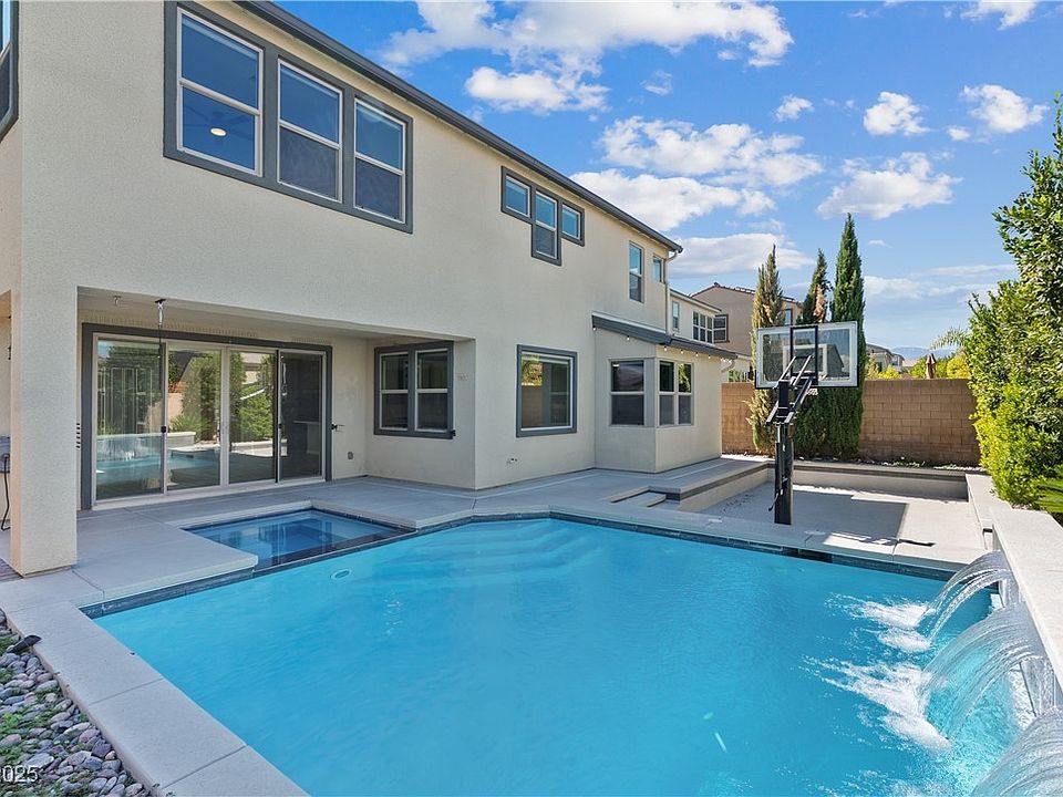 Discover this exceptional 5-bedroom home in the prestigious master-planned community of Sky Canyon. Recently refreshed with new paint throughout and brand new carpet. Sleek quartz countertops and a modern design, this stylish residence offers comfort and functionality. The spacious downstairs suite features a walk-in closet and private bath, ideal for guests or multigenerational living. Upstairs includes a generous loft and four additional bedrooms, including a luxurious primary suite with a large walk-in closet. Enjoy a desert-landscaped backyard retreat complete with a sparkling pool and spa, a built-in basketball court, and a covered side yard that is perfect for entertaining. Residents benefit from nearby shopping and access to Sky Canyon’s top-tier amenities, including a fitness center, lap pool, basketball courts, and playground. This home blends contemporary elegance with outdoor living and vibrant community life—truly the perfect place to call home.
