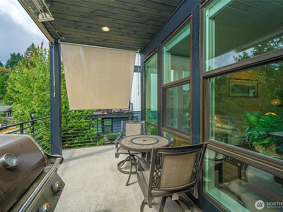 This modern downtown Bothell home features floor-to-ceiling windows, and 9-foot ceilings for natural light throughout. Main level enjoys open concept living with hardwood floors, large chef’s kitchen, dining area, living room with gas fireplace, & S. facing covered balcony. The upper-level features 3 bedrooms including south facing primary suite with spa bath and walk-in closet. Lower level enjoys the 4th bedroom/guest suite/ office/studio, with full bath. Steps to wonderful restaurants, shops, parks, boat rentals, & Gillman trail. Just moments to great North Shore schools and UW Bothell. Truly, a stunning home in perfect location! Central air conditioning and two-car garage. Easy commute to Eastside, Seattle, Everett, or anywhere. Enjoy!