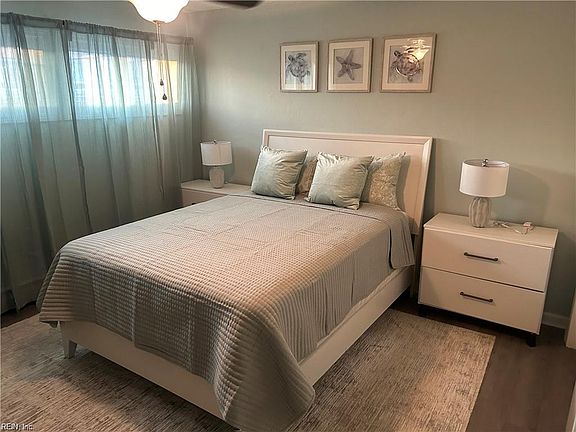 Fully furnished 1 bedroom all inclusive waterfront escape. Interstates easily accessible to Peninsula side with ease and also accessing 64 to all other cites. Private bedroom with 2 closets, 1 walk in! Living room has pull out sofa for guests and a fully stocked kitchen including a wine refrigerator. 90 day minimum leases please see agent for more details! Laundry unit on site with coded access, water and electric is included you just need to set up internet access and you are all set to enjoy the rest of the summer and fall on the beach. There is a nice wooden ramp that will take you down to Ocean View and you can watch the sun set and enjoy the breezes! 1 assigned parking spot, and several spaces for guests. There is a great view from this upstairs unit as well. Come check it out and see for yourself. $250 non refundable pet deposit