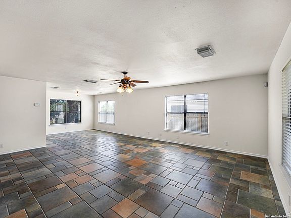 Freshly updated with big-ticket improvements, a greenbelt backdrop, and priced to leave room for your vision. This 2,334-sq-ft home in Stanton Run offers four bedrooms, two and a half baths, and a two-car garage on a generous lot that backs to a greenbelt for added privacy. Inside, the updates shine: every ceiling has been refreshed, all popcorn removed, and the interior and exterior have been freshly painted. A brand-new roof with transferable warranty and a new outdoor AC unit mean peace of mind on major systems, while the open layout gives you flexibility to design the interior to your style. The large backyard offers both space and seclusion, perfect for entertaining, play, or future projects. Stanton Run puts you near everything: Old Town Helotes is just minutes away, and Government Canyon State Natural Area offers hiking and fresh air close by. Approximate drive times include 16 minutes to The Rim and La Cantera, 16 minutes to USAA, 12 minutes to Valero and UTSA, 10 minutes to Alamo Ranch, 12 minutes to Bandera Pointe, about 25 minutes to the airport, and roughly 25 minutes to downtown San Antonio. With its updates already in place, a private greenbelt setting, and pricing that leaves room for more improvements, this home delivers flexibility, value, and a location that connects you to both nature and city life.