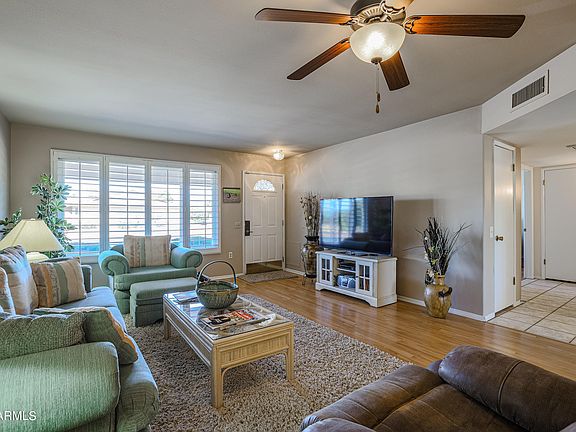 * WELCOME HOME! MRS CLEAN LIVES HERE! LOVELY WOODBURY MODEL WITH HUGE INSIDE LAUNDRY. 2 BEDROOM 2 BATH 2 CAR GARAGE. EXTRA LARGE LOT. PLANTATION SHUTTERS, LAMINATE AND TILE FLOORING. N/S EXPOSURE, XL SCREENED IN BACK PATIO. UPDATED ROOF, REPLACED WINDOWS AND DOORS. REPLACED GARAGE DOOR. EPOXY FLOORING IN GARAGE. GARAGE HAS SEPARATE EXIT TO SIDEWALK. COOL DECKING ON DRIVE WAY AND ENTRYWAY TO FRONT DOOR. SIDEWALK ON THE SIDE OF HOME LEADS TO BACK PATIO. LOW MAINTENANCE YARD. GREAT LOCATION CLOSE TO SHOPPING AND MEDICAL! SOME FURNITURE/FURNISHINGS AVAILABLE OUTSIDE OF ESCROW ON SEPARATE BILL OF SALE BETWEEN BUYER AND SELLER.