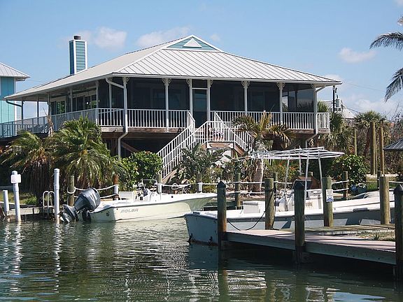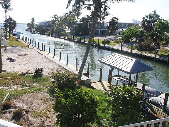 9712 LGI is a key west style home nestled on the southwest corner of the north canal. With LGI having only two canals, this rare gem offers 65 ft of private dock. A well-maintained property features an updated seawall and dock finished in 2019. As you pull up on your boat, lovely tropical foliage and landscaping welcome you to your island oasis. Once inside, an open floor plan boasts a beautiful coastal planked vaulted ceiling complimenting the new luxury vinyl plank flooring. Another feature of this great room is a working wood burning fireplace, for those chilly island nights, spacious enough for holiday island parties and family gatherings. The kitchen was updated in 2022 highlighting lovely Cambria countertops, new upper and lower cabinetry with lots of storage space. New GE Cafe aplliances, stove/oven/dishwaver await your culinary skills. The kitchen island houses an extra large wine captain and under cabinet microwave. Home features 3 bedrooms perfectly spaced for quiet and privacy. The primary bedroom has partial gulf views and includes an ensuite with open concept. Brand new double sink vanity, water closet, walk-in glass enclosed shower with penny tile contemporary design. Bedroom has an extra deep closet for all your flip flops and bathing suits. Secondary bedroom is a sunny quiet refuge with two tall windows capturing the sunny rays of Florida. This sanctuary is large enough for a queen bed for those lazy afternoon naps and has an equitable sized closet. In between the second and third bedroom is first floor laundry room. Most homes on LGI have downstairs laudry facilities. Laundry comes eqipped with LG washer and dryer and over head shelving. Next to laundry room is the second bathroom with a hinge of the black and white penny tile design of primary ensuite. The third bedroom has lovely views of the canal with ample closet space. With it's own sliders to the screened sun porch, this room feels much larger and open and could be a flex room/home office. Other important features of this home are PGT Miami Dade hurricane rated doors and windows withbrand new hardy board siding and soffits and an aluminum seamless double strapped roof. Fire place is band new and up to code in 2024. Updated permitted panel to accommodate a tankless water heater, 2024. Lower deck features from the private dock, 1200 sq ft of outdoor living area. Complete with TV, fire pit and outdoor shower. A dumbwaiter off southwest corner of property for groceries and supplies accessible from dock. An enclosed room under house for golf cart storage with adjacent open room workshop. The other thing you'll notice are the water views from the living room, dining room, kitchen and master bedroom. The sliding doors lead to a large open porch that runs the length of the west side of the house overlooking the end of the canal and gulf. There is a shady screened front porch overlooking the canal. Access to the bay and gulf is only a few minutes away. Little Gasparilla Island has miles of uncrowded and beautiful beach to enjoy. Access to the beach is deeded. There is great fishing in our surrounding waters for snook, redfish, snapper and more. Come and see what island living is like. Property is turn key and inlcudes inflatable boat lift. Price is negotiable to include a 21 ft Polar center console boat and a 6 person Club Car.