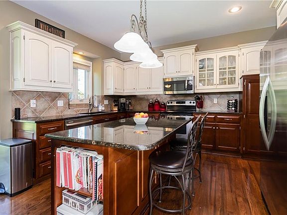 - Ceiling Fan(s), Kitchen Island, Walk-In Closet(s), Vaulted Ceiling(s), Eat-in Kitchen, Formal Living Room, Custom Cabinets, Stained Cabinets, Fam Rm Main Level, Basement BR