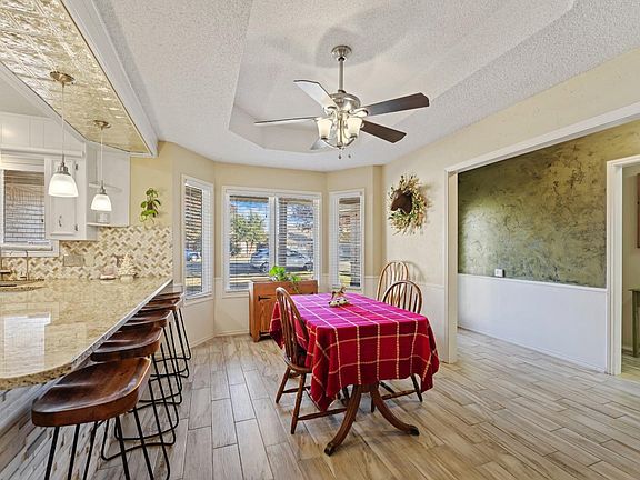 You don't want to miss out on this beautiful three bedroom, two bath house located in Kings Gate and in a cul-de-sac!! Now offering $5,000 in buyer's closing cost!! As you walk through you will notice the updated tile detail throughout the kitchen and both bathrooms!! The isolated primary bedroom is spacious with double sinks and a walk-in closet!! The tile flooring is a wonderful, light color that is easy to clean and will go with any style!! The bay window in the kitchen would be the perfect place to start your day, while allowing daylight to fill the room!! The special ceilings give the home a bigger and unique feel!! There is a nice covered patio out back for entertaining!! The storage shed is an excellent size for a workshop, any yard equiptment, and or extra decorations you want easy access to! Don't forget to notice the epoxy floor in the garage!! This is the perfect home for anyone looking to move!!
