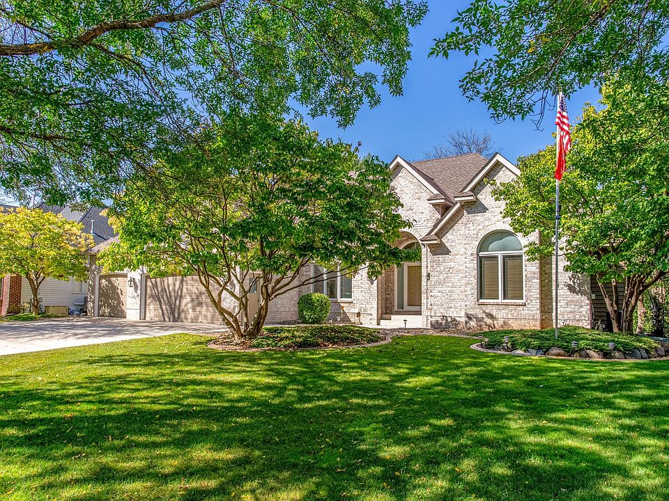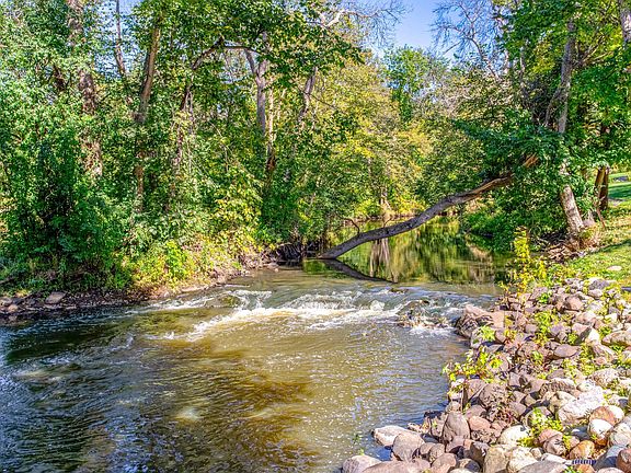 Welcome to this exceptional 1-story home, perfectly positioned on a quiet cul-de-sac with picturesque views of Coon Creek flowing through the backyard. Combining refined design and modern convenience, this home features an inviting open floor plan with 12’ ceilings and an abundance of natural light, creating a bright and airy atmosphere throughout. Step outside to a backyard retreat that truly stands apart, complete with a maintenance-free deck, a concrete patio below, and a granite shoreline along the creek offering erosion-proof durability for years to come. As you step inside, you’ll be drawn into the main-floor family room featuring floor-to-ceiling windows, a built-in entertainment center, and a 2-sided fireplace that adds warmth and charm to both the family room and adjacent informal dining area. Elegant hardwood floors lead to a gourmet eat-in kitchen with a large center island, a gas cooktop with a custom pop-up exhaust, a built-in wall oven, and a corner sink with captivating backyard views. A formal dining room near the foyer, enhanced by elegant accent lighting and a nearby buffet, provides an ideal setting for hosting special occasions. The main-floor primary suite is a convenient and private sanctuary, complete with tray-vaulted ceilings, a large picture window framing the creek, and a luxurious ensuite bathroom featuring dual sink vanities, a corner jacuzzi tub, a custom walk-in tile shower, and a spacious walk-in closet with built-in shelving and a wall safe for enhanced security. A nearby second bedroom features vaulted ceilings and direct access to a walk-thru bathroom completes the main floor. Downstairs, the walkout lower level offers exceptional space for relaxation and entertainment, including a spacious living room with a corner brick fireplace, a billiard/wet bar room (pool table included), and two additional bedrooms with large walk-in closets. A massive utility/storage room provides ample storage and convenient utility access. Additional highlights include zone heating/cooling, a 200-amp electrical system, a whole-home intercom/sound system, and wiring for a security system. The oversized 3-car garage, steel siding, and new roof (’17) add to this home's appeal. Located near walking trails and surrounded by natural beauty, this property offers the perfect blend of luxury, comfort, and convenience. Don't miss this exceptional opportunity!