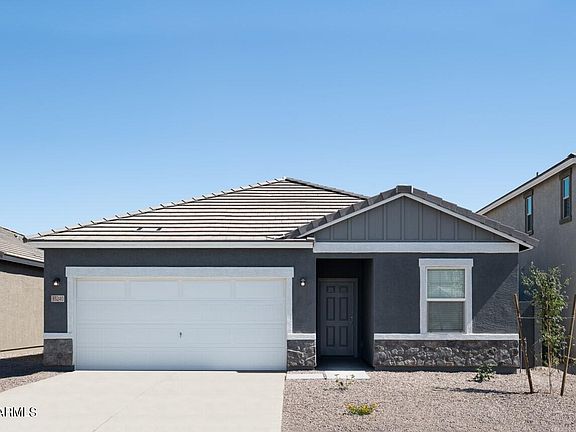 Beautiful Brand New Home in a Highly Desirable West valley location. This corner lot home features countless upgrades such as 9' ceilings, Shaw 17x17 Tile, Granite countertops in the kitchen. GE Stainless steel appliances. White shaker cabinets with Stainless Steel Pulls. Energy-efficient features throughout, WIFI & programmable thermostat. Spacious walk-in closet in the primary suite. Front yard landscaping, covered patio in the backyard. Spectacular Mountain Views! The community features a greenbelt, a premium neighborhood park with playground. Conveniently located near the new 202 freeway, schools, shopping and dining, and Estrella Mountain Regional Park.