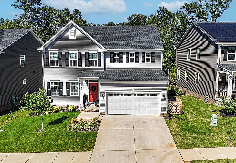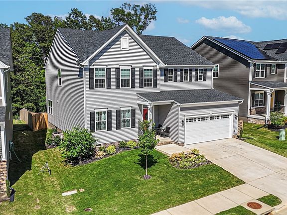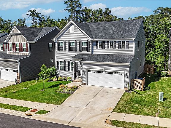 Welcome to your dream home in Stonehouse Ridge! This stunning 5-bed, 3-bath home offers a spacious open floor plan great for relaxing and entertaining. The living room offers plenty of space to cozy up by the gas fireplace, and the kitchen boasts a light and airy feel with white quartz countertops, stainless steel appliances, and an oversized kitchen island. The first-floor guest suite offers plenty of space for your guests to relax and includes a private doorway to the full downstairs bath. Upstairs, a luxurious primary suite features double walk-in closets and an ensuite bathroom with dual vanities and a tile shower. The spacious loft offers a great place for your game room or man cave and is adjacent to three additional bedrooms and a third full bath. This home shows like a model home and is loaded with upgrades, including recessed lighting, a contemporary wrought iron staircase banister, wide-plank luxury vinyl floors, custom media walls in the loft, living room, and primary bedroom, and a privacy-fenced backyard.