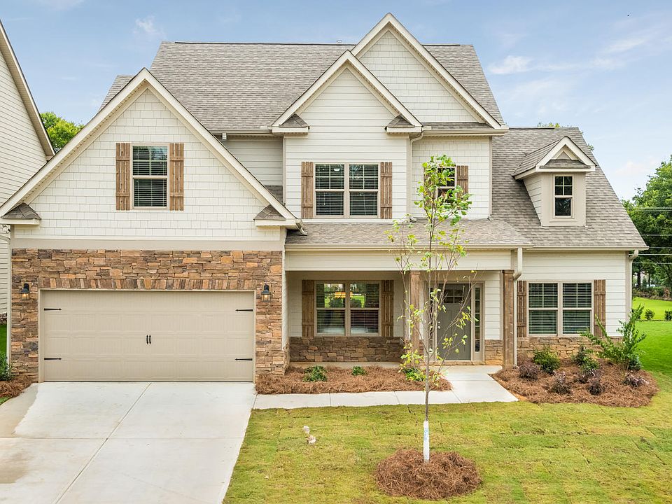 Move-In Ready! The Azalea Floor Plan is open concept dining, eat-in kitchen, family room, oversized kitchen island adding additional seating for quality family time and entertaining. Expansive 216 SF covered patio of kitchen/family room allows for convenient outdoor relaxing and entertaining. Mud Room and laundry off garage will easily keep your home in order. Master Suite on Main features a seating area with cozy fireplace, connected Master Bath includes tiled shower and soaking tub, double vanity and huge walk-in closet. Second level Media Room with kitchenette can be used as In-Home Movie Theatre, Play Room or Rec Room. Additional bedrooms and 2 full baths accommodate family needs or ultimate privacy for guests. Builder offering $7,500 in closing costs with a Preferred Lender! The broker for Trust Real Estate Group has a personal interest in sale of this home.