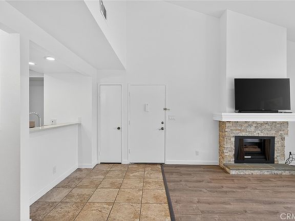 Cozy fireplaceTile flooringHigh ceilingsPlenty of natural light