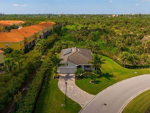 Experience unparalleled natural beauty and unmatched privacy in the crown jewel of Mirada, 9715 Mirada Blvd! This premium oversize lot has no neighbors and is surrounded on all sides by protected natural preserve. The owner has extensively upgraded the landscaping and gardens to create the ultimate haven for those seeking a peaceful oasis at home. Inside you'll find large porcelain tile floors throughout the main living areas. The floor plan provides an expansive great room with an open-concept family room, dining room, island kitchen, and coffee bar, with large sliding glass doors leading to the spacious covered lanai. The master suite includes his and hers closets, dual sinks, and a separate shower and tub. Two guest bedrooms and two guest bathrooms are perfectly placed in the front of the home, separate from the private master suite. You'll enjoy spectacular sunsets from your back lanai every evening overlooking your quaint garden and the peaceful preserve. Maintenance-free leased solar panels provide average net savings of $60/month, and the neighboring hospital energy grid ensures minimal power outages, even in storms. Mirada is a gorgeous gated community of just 136 homes that brings back the neighborly feel that we all love, situated in an unbelievable location on Bass Rd in Fort Myers, just minutes from Fort Myers Beach, Sanibel Island, and endless shopping, dining, and entertainment destinations. While located within ten minutes of our beautiful beaches, this home experienced no flooding or damage from any hurricanes. Schedule your private showing today and make this your own oasis!