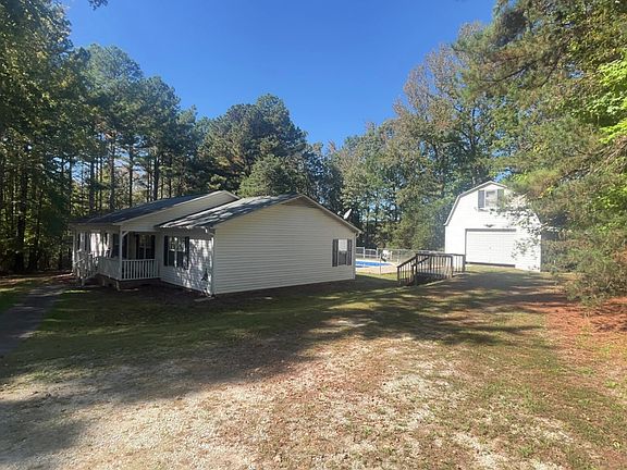 Ranch House built in 1996. Includes a front porch, back deck with pool, detached garage, and carport on a large lot. Landlords are next door.