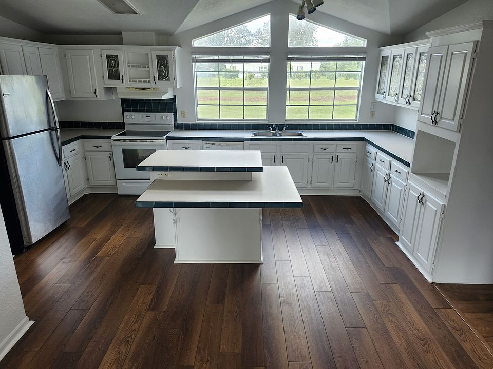 Modern updatesCenter islandLarge windowsBright open floor planLaundry hookupsVaulted ceilingsWood-look flooring
