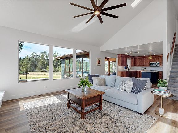 Imagine coming home to this stunning property in the prestigious Deerfield subdivision on 5 acres! Natural lighting shines through the large windows of this 4 bed 3.5 bath home. Beautifully updated kitchen with quartz counters and Knotty Alder wood cabinets and all new stainless appliances. The main level features new LVP flooring. Enjoy the sunroom and experience the beautiful views of landscaping, meadows surrounded by mature pines and the incredible wildlife. This home also features a spacious family room with built in bookshelves which could be easily converted into an office. The master bedroom features an updated bathroom with cherry cabinets, quartz counter tops, large shower, washer and dryer and spacious walk-in closet. The finished basement is perfect for enjoying the game with friends. Enjoy stargazing at night off the back patio in the hot tub or enjoy a quiet morning coffee off the front deck. The exterior was just freshly painted and a new HVAC system was just installed. Don't miss out on this amazing Deerfield opportunity.