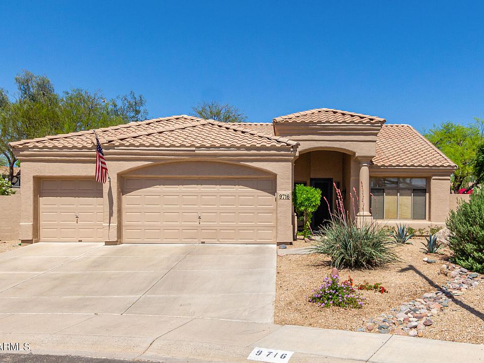 This gorgeous property sits on over a quarter acre featuring a spacious 3-car garage. Explore inside to discover fabulous living & dining areas offering vaulted ceilings, neutral tile floor, & bountiful natural light. Stone fireplace in the family room! The beautiful kitchen boasts wood cabinetry, granite counters, new Kitchen Aid SS appliances, backsplash windows, LED lighting, & a center island. Fiber optics throughout. Double doors open to the main retreat showcasing plush carpet, a private bathroom with granite dual sinks, a walk-in closet, & direct access to the back patio. Enjoy relaxing along with your loved ones in the wonderful backyard including a covered patio, a refreshing blue pool. Pool/Lanscaping included in lease price. Pool fence installed. HOA included in lease price