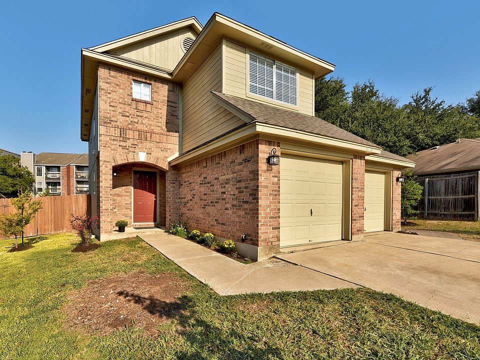 Updated, clean, freshly painted and ready for move-in home with 3 bedrooms, 2.5 bathrooms with approximately 1,200 sf of living space. Find an open living room, dining room and kitchen space on the first floor with a half bath too. Newer vinyl flooring throughout, large private fenced backyard with a covered porch and attached garage. Find a remodeled kitchen with refrigerator, microwave, dishwasher and disposal included. Ceiling fans in each room and walk in closets in every bedroom with a large storage area under the stairs in the living room. Contemporary window coverings inside and sun screens outside. Newer Train A/C & heat system which is maintenanced regularly. Home located on a spacious cul-de-sac. Standard sized business trucks and vans with company logos are able to park at this property without a problem, as there is no HOA. Close to parks, schools, public transit bus stops, restaurants, grocery stores, movie theaters & coffee shops. Community pool & tennis/pickle ball courts available to use for a fee. Easy commute access to Mopac, Hwy 35 & 290, 45, 1626 & appropriately 15 minutes to downtown Austin. Prospective tenants must make or show income of at least 3 times monthly gross income to monthly rent and have a good prior rental history.