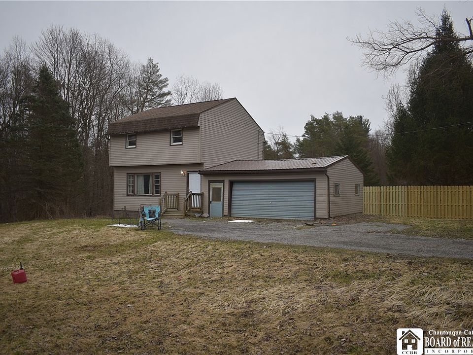 This home has an eat in kitchen, living room and half bath on first floor and 3/4 bedrooms and full bath on 2nd floor. Full basement and back enclosed porch. Attached garage that needs a new door with dirt floor. There is a barn on the property but needs extensive work to save it. This home used to be a donkey farm.