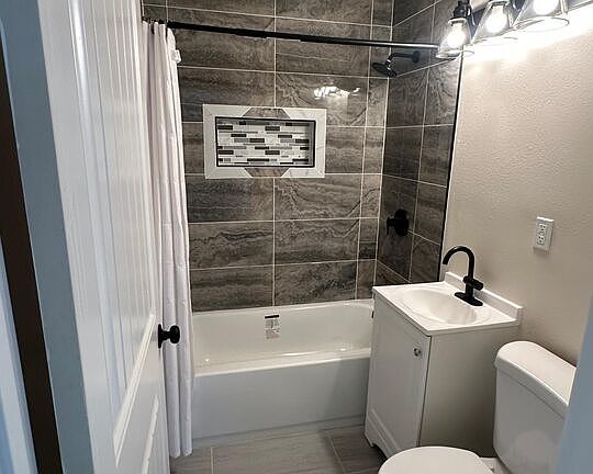 SUPER FULLY REMODELED HOUSE. 5 BEDS PLUS 2 FULL BATHS. (PUBLIC RECORDS SHOWS 3 BED AND 1 BATH) NEW DUAL PANE WINDOWS. CENTRAL AIR AND HEAT SYSTEM INSTALLED. NEW CUSTOM PORCELAIN TILE FLOORING IN KITCHEN, BATHROOMS, AND LAUNDRY ROOM. NEW GRAY RUSTIC STYLE LAMINATE FLOORING IN LIVING ROOM, HALLWAYS, AND BEDROOMS. THE KITCHEN IS BRAND NEW. NEW CUSTOM KITCHEN CABINETS, NEW QUARTZ STONE COUNTERS, NEW GARBAGE DISPOSAL, NEW PULL-OUT FAUCET. NEW BATHTUB, NEW TILED UP SHOWERS WALLS WITH ELEGANT MOSAIC DESIGN, NEW VANITIES. NEW TOILETS. ALL NEW PLUMBING FIXTURES. NEW LIGHT FIXTURES. NEW PAINT INSIDE AND OUT. FHA/VA/DOWN PAYMENT ASSISTANCE/OK