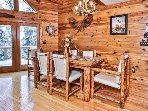 FRONTIER LAKES -Golden Eagle log home with over 200' of frontage in Frontier Lakes. Privacy & natural beauty abounds up here & even includes a stunning view of 2 natural islands. Entering your blacktop driveway winds you up to your 3 bedroom home with a loft & full walkout basement lakeside. Open concept gives you lake views from nearly every room with 1st floor laundry, master suite, guest bedroom and bath on main level, while the loft is used as a den and looks out over the drive and lake. The lower level has large play area with 3rd bedroom, 2nd guest bath, office, utility area and large storage room. You can't beat the amenities with Generac generator, custom wall painting for each room, carefree metal roof, WIFI thermostat, Home Warranty, & new high efficiency furnace. Twin Island is over 200 acres & dues run only $450 per year. Plenty of room for all of your toys with a drive through 2 car garage as well as the large 2 car+ garage by the home. Furnishings are negotiable.