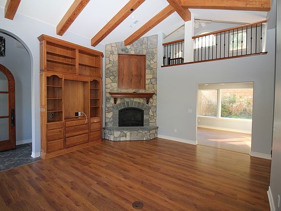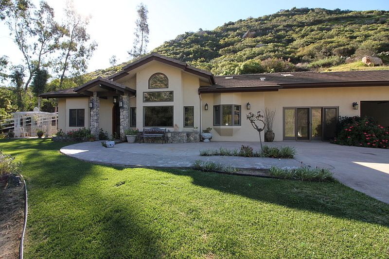 Welcome home to your private oasis! Available for rent is a two bedroom, secluded and private guest house on a total of 18 acres. This spectacular property boasts a duck pond, tennis courts (with basketball hoop) and spacious lawns, and you will love having full access to these incredible grounds. The guest house is set away from other buildings and is extremely private. It features it's own fish pond, gazebo sitting area with a firepit with a nice, private lawn. Inside you will find wood floors throughout and an exposed beam ceiling with a stone fireplace. The two bedrooms are oversized and the kitchen features an eat-in bar with room for a dining room table. Washer and dryer hook ups are inside the house, and there is direct access to the garage. Upstairs is a loft area that would be an incredible home office! The location cannot be beat...18 acres of beautifully landscaped grounds sit in quiet and seclusion, yet you are only 1.4 miles from interstate 15.